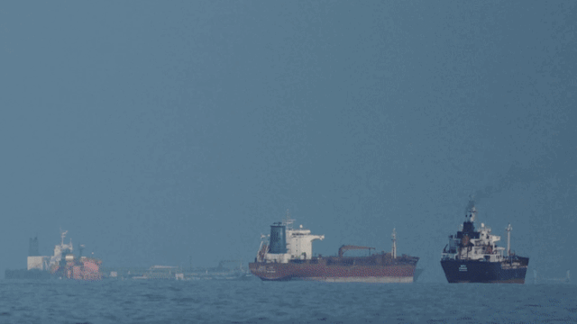 Petroliere e navi mercantili si sono allineate nello Stretto di Hormuz durante la sua chiusura.AP