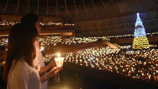 Giacarta – Celebrazione notturna Natale si è svolto vivacemente in diverse regioni dell’Indonesia. Vari addobbi natalizi e luci colorate che decorano le strade, i centri commerciali e le zone residenziali sembrano scintillanti, creando un’atmosfera calda e gioiosa.