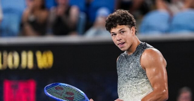 Dopo la vittoria su Valentin Vacherot nel terzo round degli Australian Open, sabato mattina presto, Melton si è avvicinato alla telecamera, dove ha autografato l’obiettivo, scrivendo: “USA ‘til it’s reverse”.