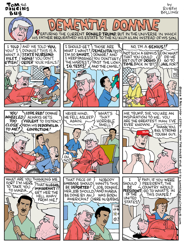 -> È il GUIDA INTERNA DELL’ALVEARE! Unisciti oggi stesso all’Inner Hive di Tom the Dancing Bug e il costo dell’iscrizione sarà donato al Democracy Defenders Fund per citare in giudizio Donald Trump più e più volte e proteggere i diritti degli elettori! Ottieni fumetti e contenuti esclusivi ogni settimana, sostieni Tom the Dancing Bug… e salva l’America!