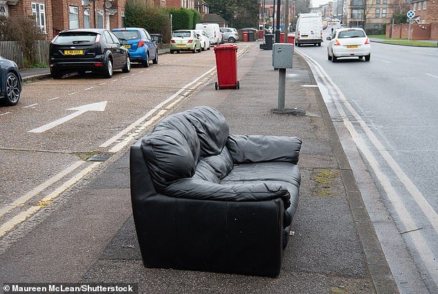 Le norme sulla sicurezza antincendio che costringevano i divani britannici a essere riempiti di sostanze chimiche potenzialmente dannose vengono finalmente riviste dopo una campagna durata anni da parte di una madre che avvertiva che rappresentavano un rischio per le famiglie. Nella foto: un divano abbandonato su un marciapiede a Chalvey