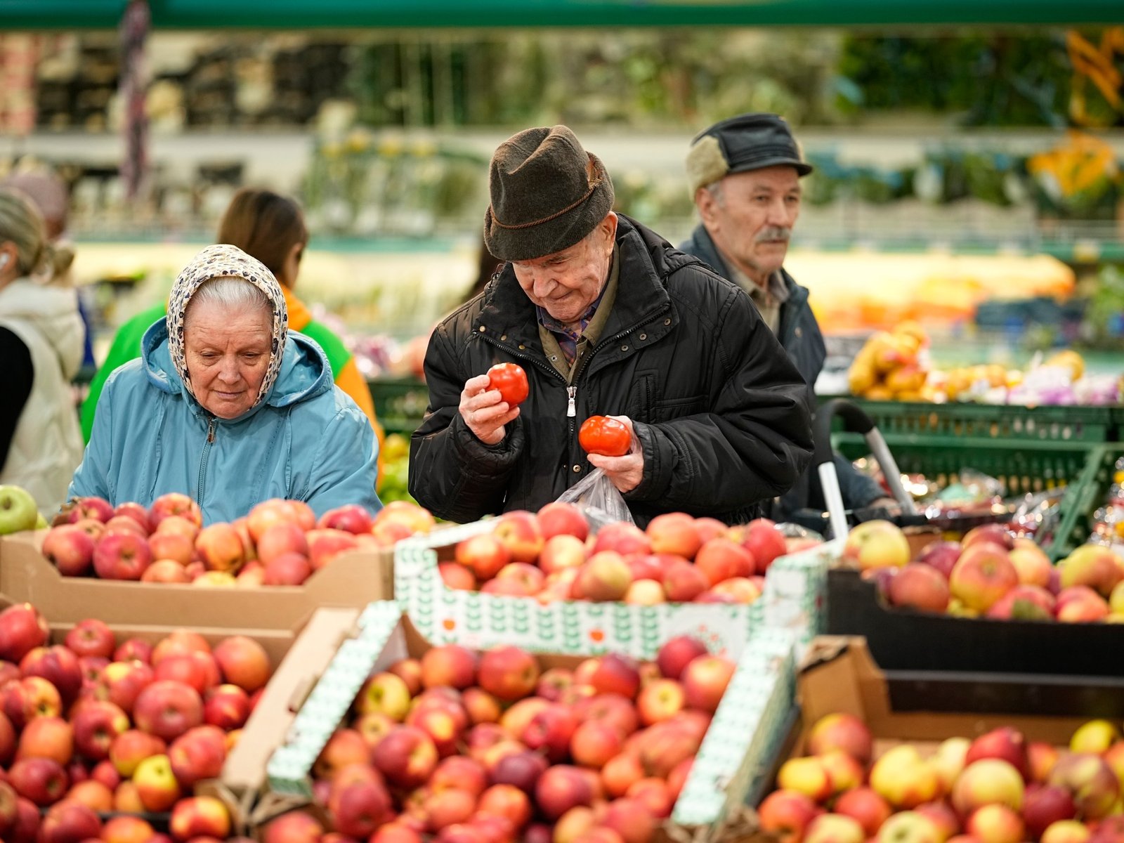 Le persone acquistano frutta in un ipermercato a Mosca, in Russia, il 3 novembre 2023. Gli scaffali dei supermercati di Mosca sono pieni di frutta e verdura, formaggio e carne. Ma molti acquirenti guardano la selezione con sgomento poiché l’inflazione fa sentire i loro portafogli vuoti. (Foto AP)