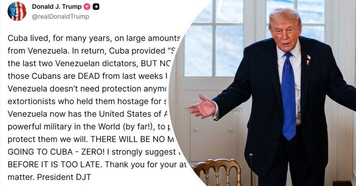 Trump ha affermato sui social media che Cuba ha vissuto a lungo del petrolio e del denaro venezuelano e ha offerto sicurezza in cambio, “MA NON PIÙ!”