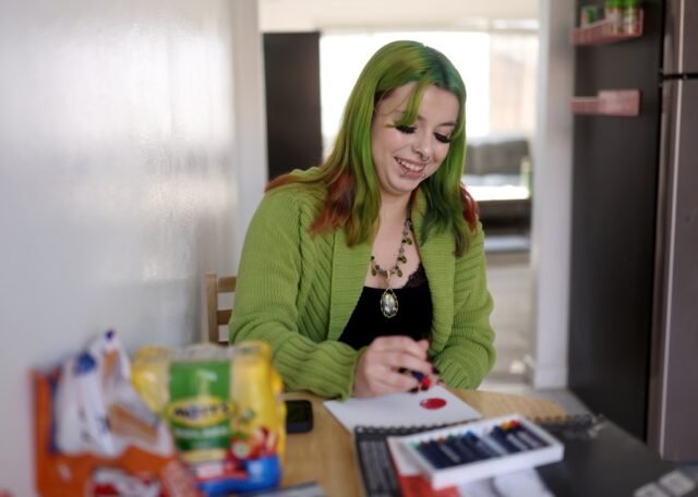 Stevie Steele, 22 anni, studentessa del Los Medanos College, studia nel loro nuovo appartamento ad Antiochia, in California, giovedì 30 ottobre 2025. Steele ha ricevuto assistenza da First Place for Youth, con sede a Oakland, un’organizzazione no-profit che aiuta i giovani affidatari in età di transizione. (Jane Tyska/Gruppo notizie della Bay Area)
