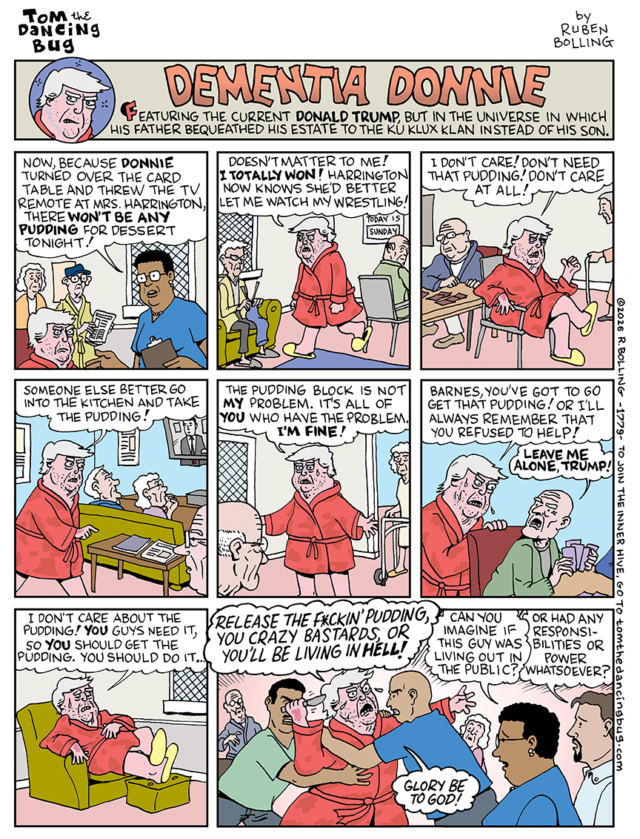 -> È il GUIDA INTERNA DELL’ALVEARE! Unisciti oggi stesso all’alveare interno di Tom the Dancing Bug e il costo dell’iscrizione sarà donato al Fondo per i difensori della democrazia per citare in giudizio Donald Trump più e più volte e proteggere i diritti degli elettori! Ottieni fumetti e contenuti esclusivi ogni settimana, sostieni Tom the Dancing Bug… e salva l’America!