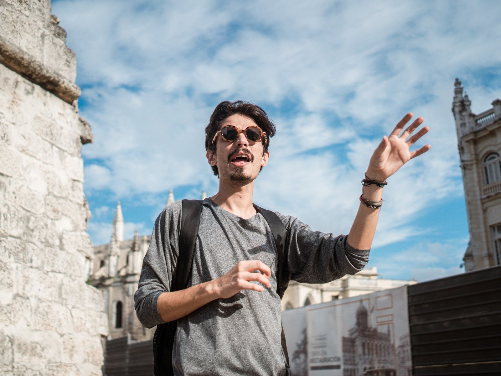 Una guida turistica si trova all'esterno di un edificio a cupola a L'Avana