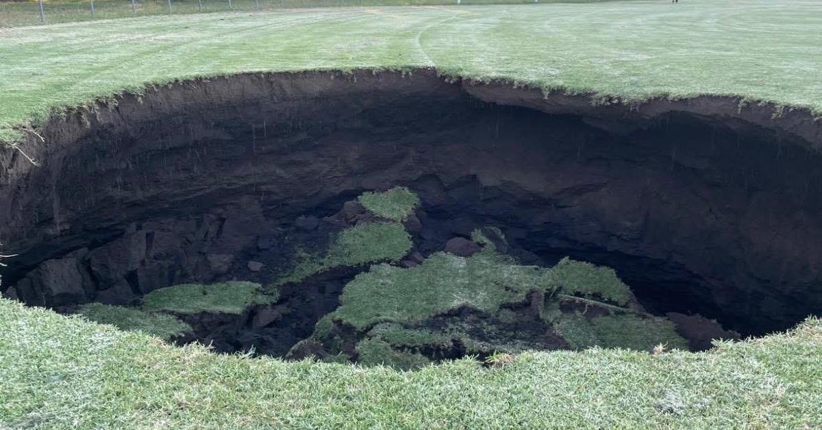 Ha detto che una dolina del genere rappresenta un “serio rischio”, sottolineando che l’ovale sembrava essere stato falciato di recente.