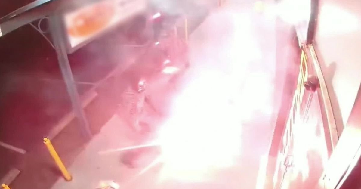 L’esplosione è stata vista dalle telecamere a circuito chiuso dall’altra parte della strada ed è stata sentita a chilometri di distanza.