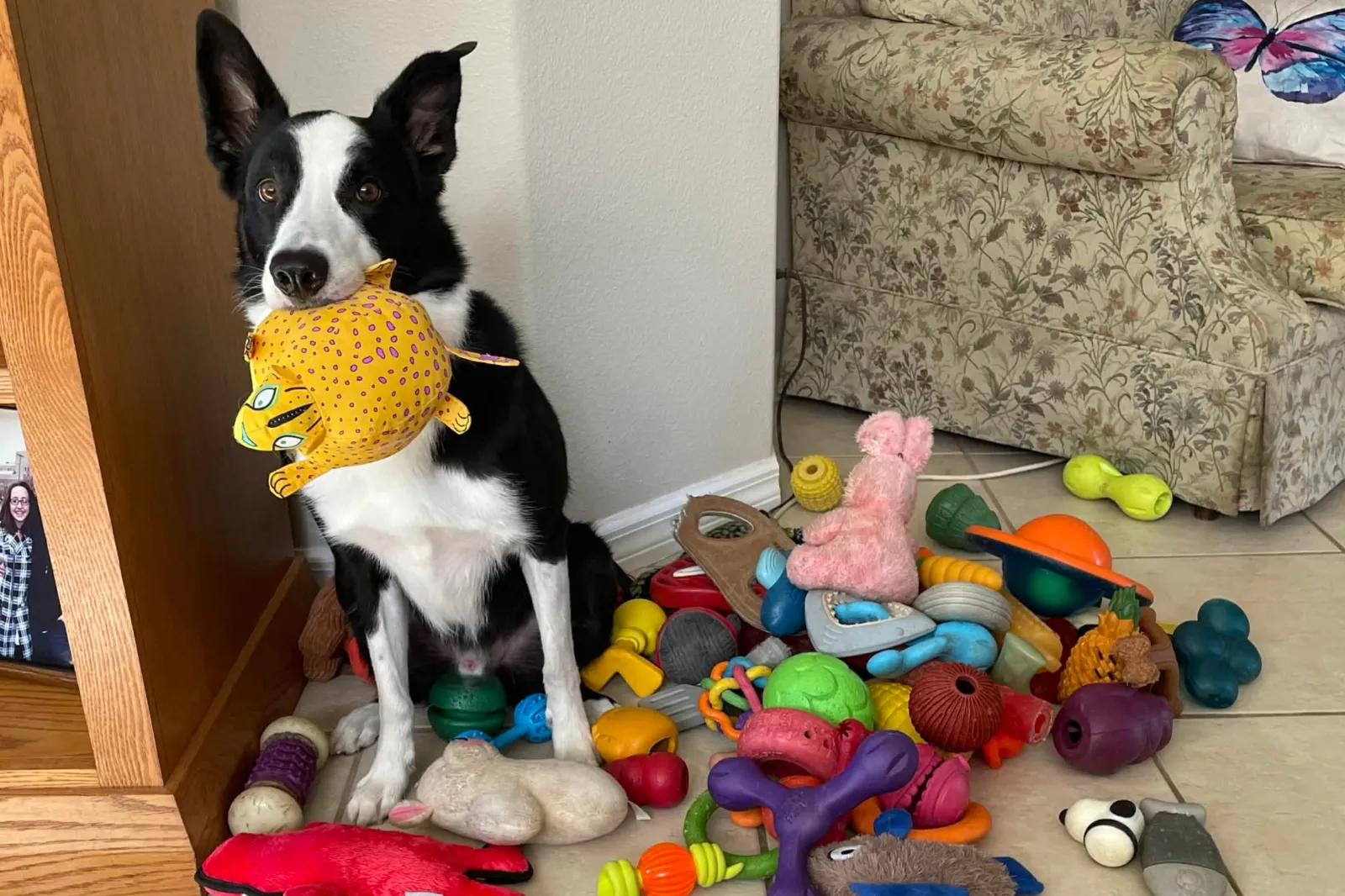 I giocattoli sono stati poi posizionati in una stanza diversa, mentre i proprietari hanno chiesto ai cani di recuperare ciascun giocattolo per nome, e in entrambe le condizioni, sette cani su dieci hanno imparato le nuove etichette.