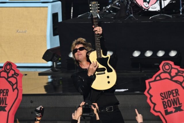 La banda dell’East Bay – composto dal cantante-chitarrista Armstrong, dal bassista Mike Dirnt e dal batterista Tré Cool – si è esibito durante le cerimonie pre-partita per celebrare il 60° anniversario del gioco ed è servito come colonna sonora mentre generazioni di MVP del Super Bowl entravano nel campo del Levi’s Stadium.
