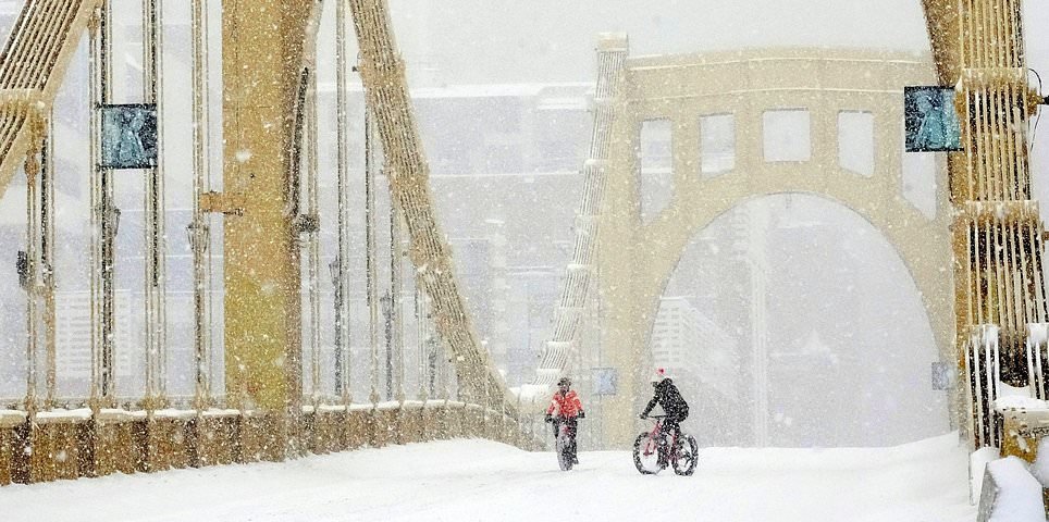 La gente ha preso le colline innevate a Washington DC, Filadelfia, New York City e in altri luoghi in tutto il paese.