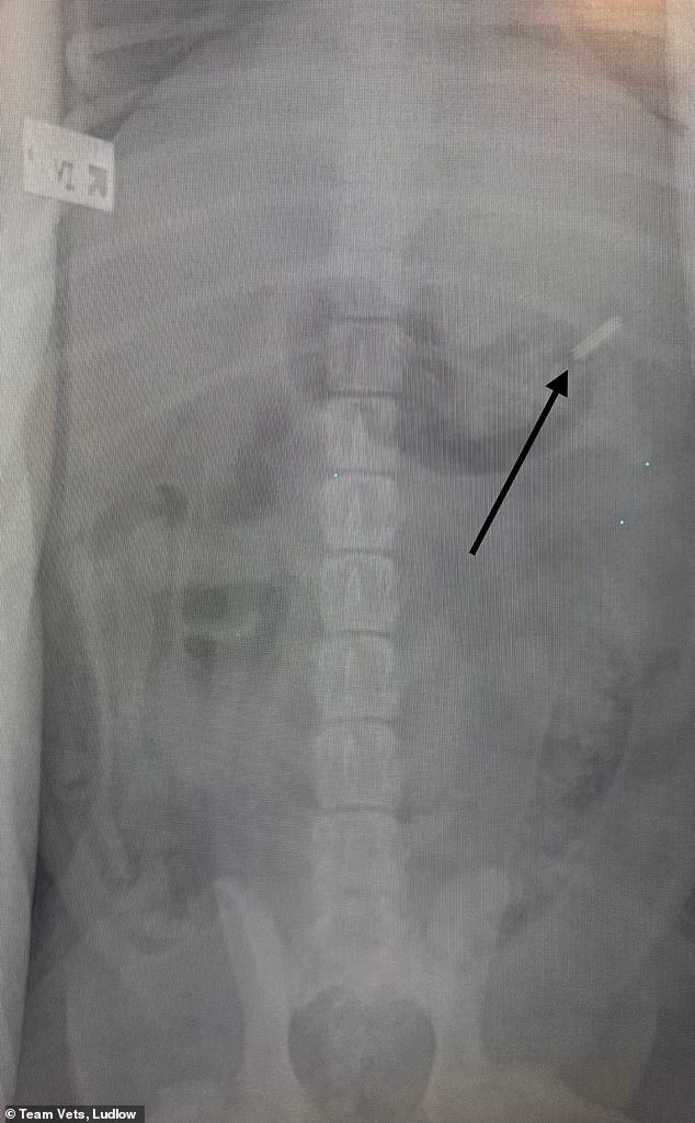 Charlie è andato sotto i ferri dopo che una radiografia ha confermato che la lama da 1,5 pollici (39 mm) era conficcata nel suo stomaco – ed è tornato a casa più tardi lo stesso giorno dopo un intervento chirurgico d’urgenza per rimuovere l’oggetto.
