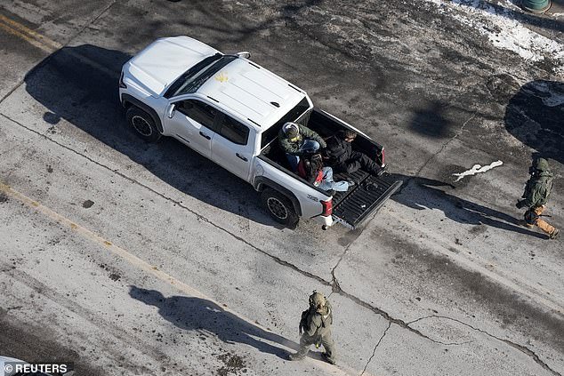 I detenuti sedevano nel retro di un camion bianco in mezzo alle temperature gelide nel sud di Minneapolis