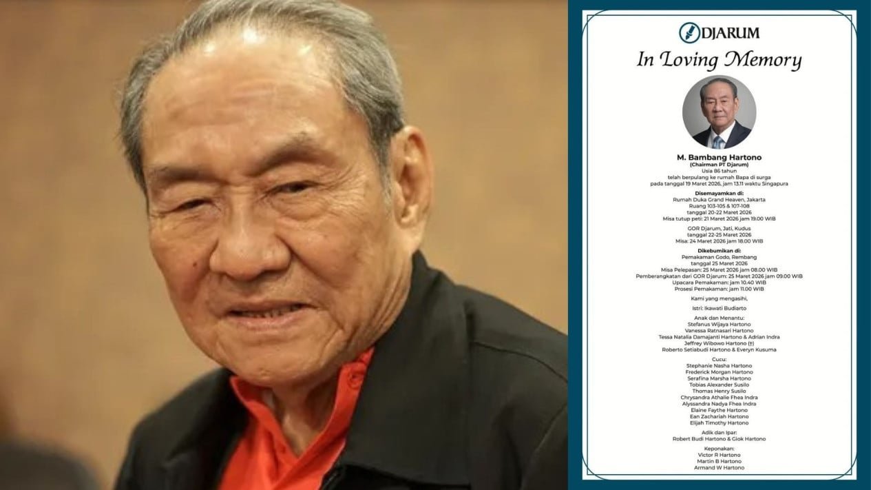 “M. Bambang Hartono, 86 anni, è morto al Padre nei cieli il 19 marzo 2026, alle 13:11 ora di Singapore”, è stato citato nell’annuncio del Gruppo Djarum, sabato 21 marzo 2026.
