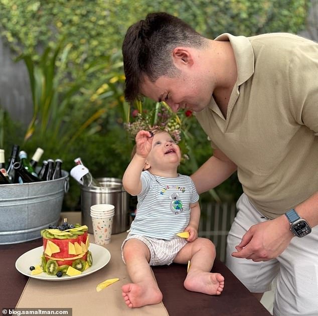 Altman ha un figlio neonato con suo marito. Ha condiviso una foto, nella foto sopra, dando il benvenuto al mondo al bambino nel febbraio 2025