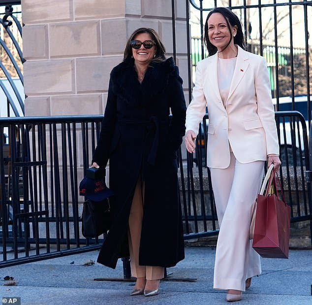 Sostenitori esultanti hanno incontrato Machado fuori dai cancelli della Casa Bianca, ha riferito l’Associated Press.
