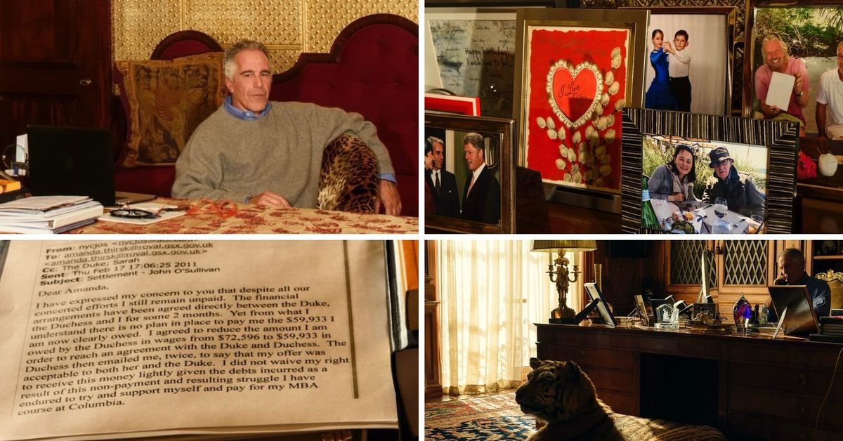 Una delle immagini contiene un’e-mail stampata sulla sua scrivania di uno scambio tra Epstein e l’ufficio del governo reale del Regno Unito riguardante il pagamento da parte di un duca e una duchessa.