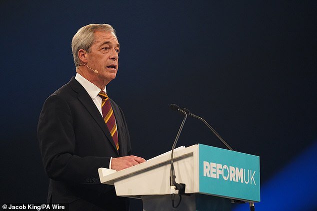 Nigel Farage parla ieri durante una manifestazione per Reform UK al NEC di Birmingham