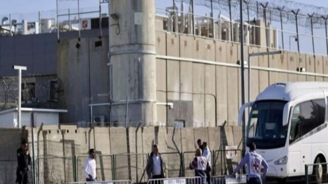 Foto d’archivio – Un autobus che trasferisce prigionieri palestinesi arriva nella città di Al-Bireh, in Cisgiordania, il 26 novembre 2023.