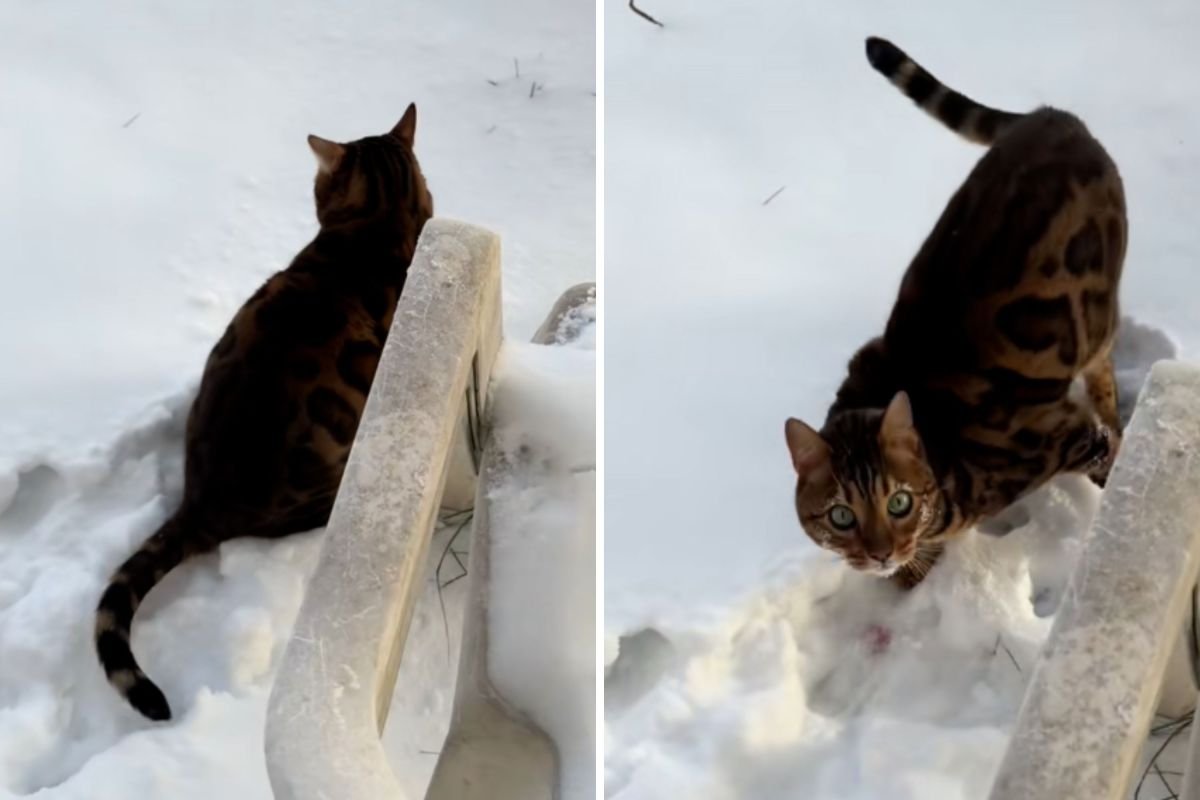 La proprietaria Stacey l’ha lasciata di 4 anni Gatto del BengalaTony, fuori dalla sua casa canadese per godersi la neve appena caduta alla fine di dicembre. Ha iniziato a filmare e, al momento giusto, ha deciso di portare avanti i suoi affari, ma per fortuna ha continuato a registrare, perché ha notato quella che sembrava “pipì rosa”.