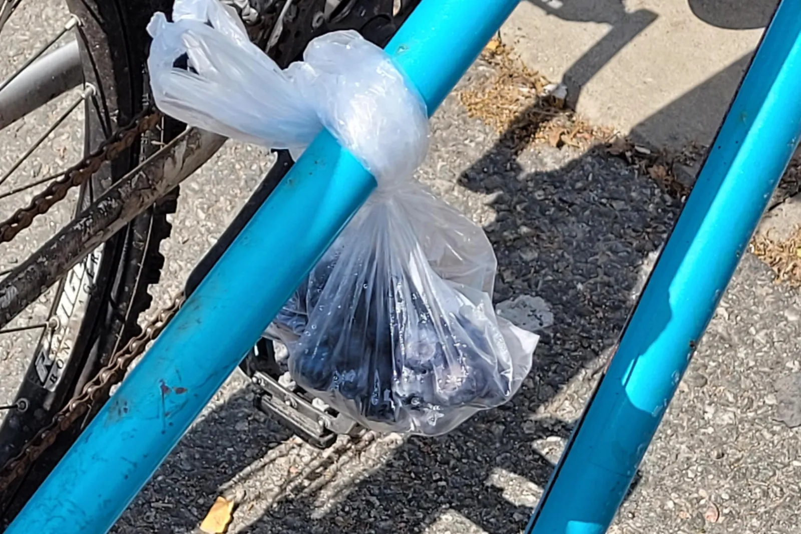 Il post del 19 aprile condiviso dall’utente Il mio nome utente non è interessanteil post era intitolato: “Qualcuno ha legato un sacchetto di plastica con dentro dei mirtilli, sulla mia bicicletta oggi”.