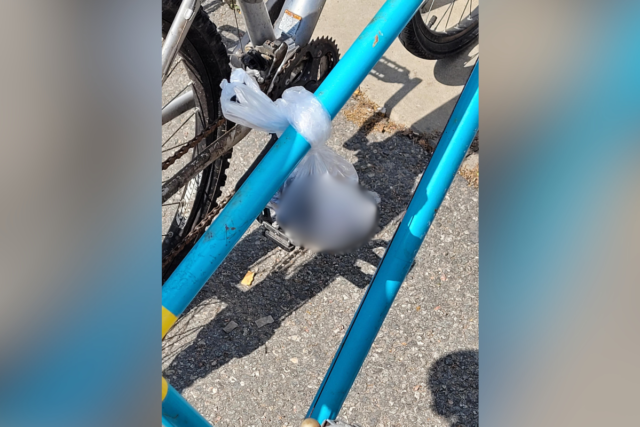 Un ciclista è rimasto sconcertato dopo essere tornato in bicicletta per scoprire una misteriosa sorpresa legata alla barra centrale.