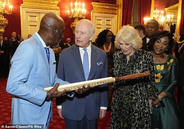 Il re Carlo e la regina Camilla ricevono una mazza da cricket dal grande Sir Viv Richards delle Indie occidentali durante l’annuale ricevimento del Commonwealth Day al St James’s Palace di Londra