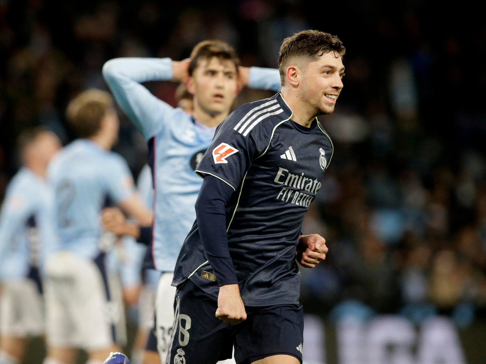 Federico Valverde segna nei minuti di recupero mentre il Real Madrid vince 2-1 in casa del Celta Vigo e mantiene la corsa al titolo della Liga.