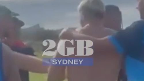 Il filmato ripreso e condiviso da Mark Levy di 2GB mostra la mischia scoppiata quando i giocatori delle squadre under 17 di Port Macquarie e Wollongong si sono stretti la mano dopo la partita di sabato scorso.