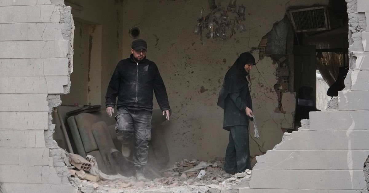 Alcune persone ripuliscono i detriti dal loro appartamento a Teheran, in Iran. (AP)