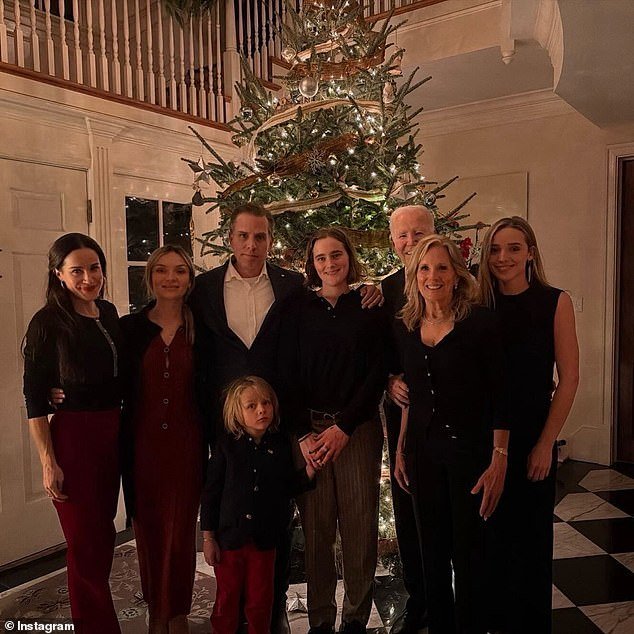 Biden, 83 anni, ha pubblicato l’immagine mercoledì sera, in posa davanti a a Natale albero insieme a sette membri della famiglia.