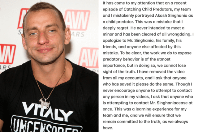 In una dichiarazione condivisa su Kick e successivamente pubblicata su X, Vitaly ha detto che la sua squadra aveva commesso un errore durante un episodio della sua serie Catturare i predatori bambini.