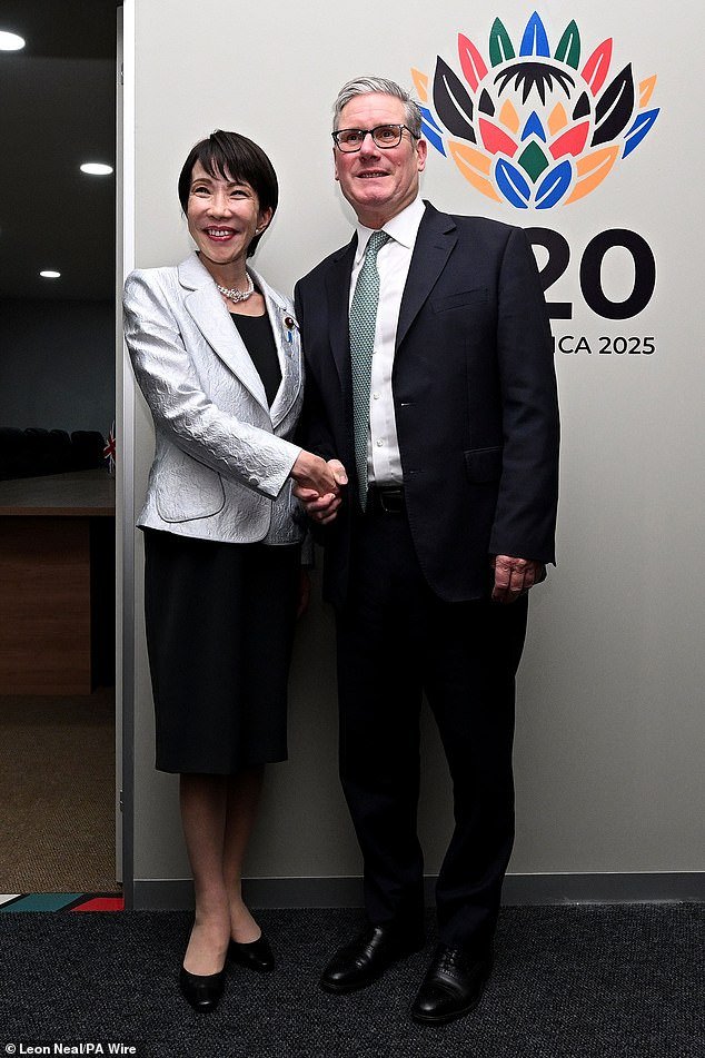 Keir Starmer incontrerà oggi a Tokyo il suo omologo giapponese Sanae Takaichi. Nella foto: Starmer e Takaichi durante un incontro bilaterale al vertice del G20 a Johannesburg, in Sud Africa. Data immagine: sabato 22 novembre 2025