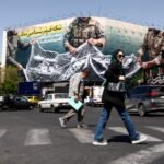 Il fumo si alza su Piazza Azadi (Libertà) a seguito di uno sciopero, nel mezzo del conflitto USA-Israele con l’Iran