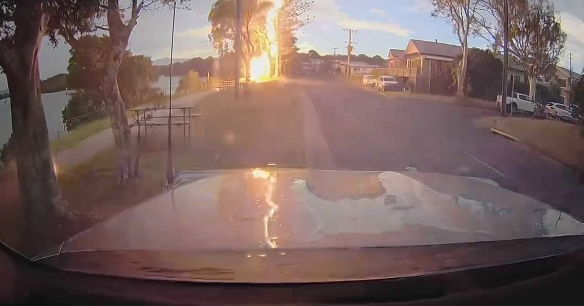 L’automobilista ha avuto un grande spavento quando il fulmine si è schiantato proprio davanti a lui a Bellingen, nel NSW, venerdì sera.