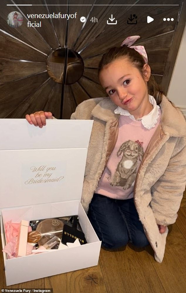 Venezuela Fury ha dato il nome alle sue damigelle d’onore come ha chiesto giovedì a sua sorella Valenzia, di sette anni, con una lussuosa confezione regalo P Louise