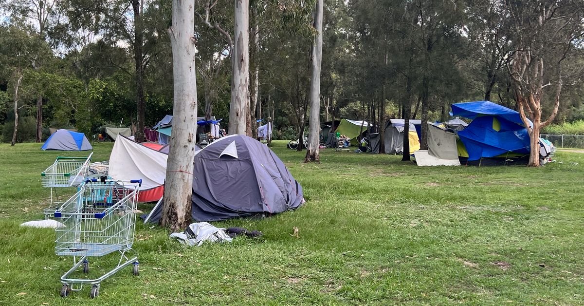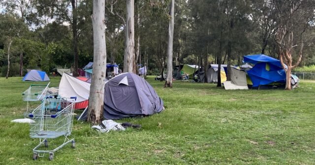 Un campo per senzatetto in un parco di Brisbane nel 2024. (Getty)
