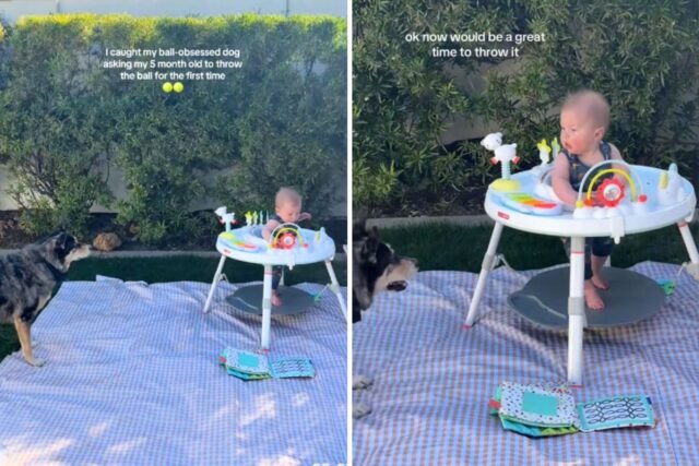 Un cane ossessionato dalla palla ha incrociato gli occhi con un bambino di 5 mesi, desiderandogli silenziosamente di fare l’unica cosa per cui lo ha addestrato fin dalla nascita: lanciare. Ma non sapeva che il bambino non era ancora arrivato.
