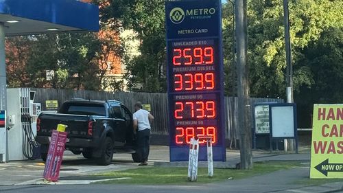 Il prezzo del diesel in questa stazione di servizio a Palm Beach, sulle spiagge settentrionali di Sydney, ha raggiunto i 3,39 dollari al litro. (In dotazione)