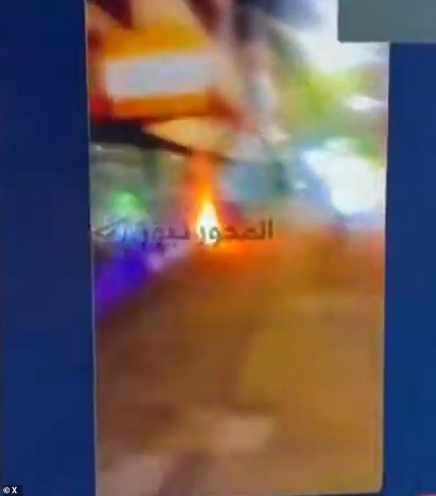 Un video che sembrava essere stato pubblicato su Telegram da un gruppo islamico sostenuto dall’Iran mostrava una persona che fuggiva dalla scena mentre l’edificio era in fiamme