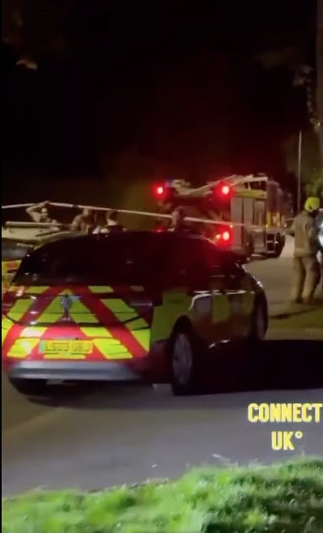Le riprese video mostrano le luci blu lampeggianti delle auto della polizia che bloccano la strada sul posto, con la presenza anche dei vigili del fuoco.