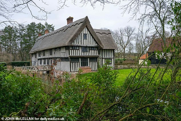 Il signor Harington (nella foto) ha acquistato la casa medievale dal tetto di paglia nel Suffolk, circondata da otto acri di terreno, nel 2017