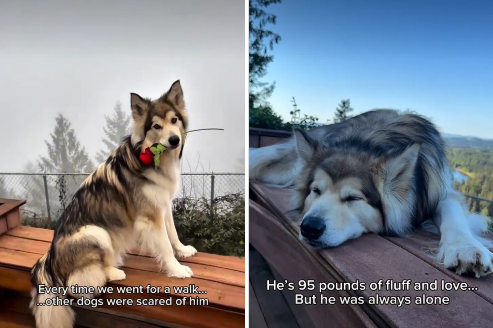 “Pesa 95 chili di pelo e amore… Ma era sempre solo. Non ha mai avuto un solo amico cane. Ogni volta che andavamo a fare una passeggiata… Gli altri cani avevano paura di lui. Forse perché sembrava troppo grande, troppo diverso”, si legge nella didascalia.