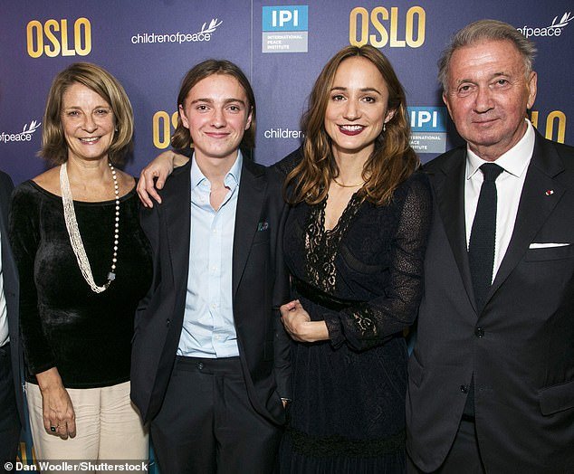 Edward Juul Rod-Larsen (al centro a sinistra), 25 anni, è stato trovato morto mercoledì a Oslo, pochi giorni dopo che la polizia norvegese e francese avevano avviato un'indagine congiunta sui suoi genitori, il diplomatico Terje Rod-Larsen (a destra) e Mona Juul, ex ambasciatrice (a sinistra). L'attrice britannica Lydia Leonard è raffigurata al centro a destra con la famiglia, alla première di Oslo nel 2017