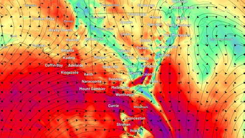 La neve potrebbe cadere ad altezze di soli 600 metri sopra il livello del mare in Tasmania, mentre qualche neve potrebbe cadere anche a Victoria, anche se solo sopra i 1000 metri.
