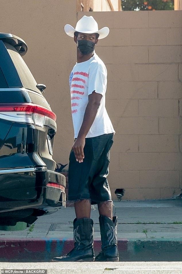 Nas è stato visto per la prima volta camminare lungo Ventura Blvd con stivali western bianchi e un paio di pantaloni attillati.