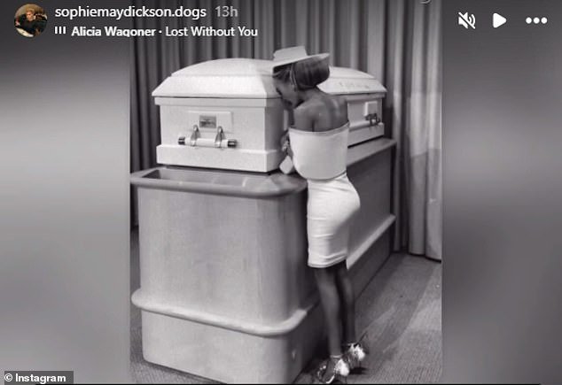 La signora Dickson, 32 anni, ha condiviso foto di se stessa vestita di bianco con la testa appoggiata alla bara della principessa insieme ad altre foto del funerale.
