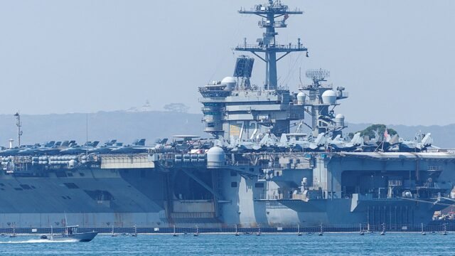 La USS Abraham Lincoln viene mostrata alla Naval Air Station North Island a San Diego, in California, l’11 agosto 2025. (Mike Blake/Reuters)
