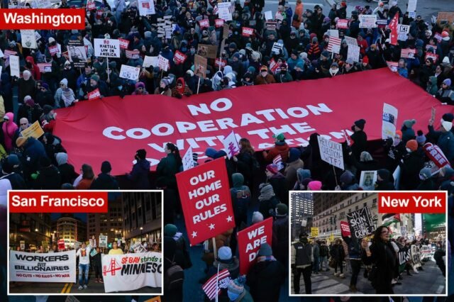 Migliaia di persone in tutto il paese hanno inondato le strade martedì in uno sciopero di massa per protestare contro l’immigrazione e le forze dell’ordine, segnando esattamente un anno da quando Donald Trump ha prestato giuramento per il suo secondo mandato presidenziale.