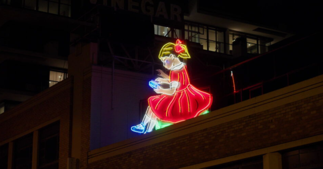Per una settimana l’insegna al neon di 90 anni affettuosamente conosciuta come “Little Audrey” verrà spenta nella sua sede di Abbotsford e sostituita con un’installazione di una ragazza che scorre su un telefono.